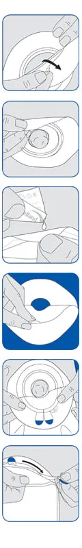 Then carefully remove the adhesive material (base).Stretch the skin with one hand and gently pull the adhesive in the opposite direction with the other. Sudden movements can hurt the skin and irritate it.