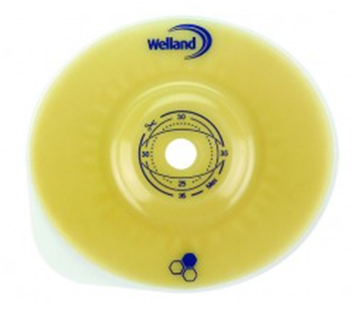 • Cutting guide allows for a perfect fit to different stoma shapes and sizes reducing the risk of potential leakage and skin irritation