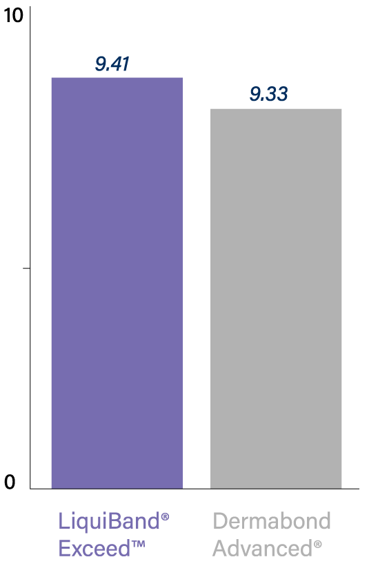 While holding the wound edges together, apply an even coat of LiquiBand® Exceed™ over the length of the wound. Continue to hold the wound edges together for 60 seconds.
