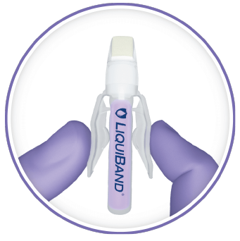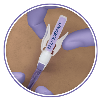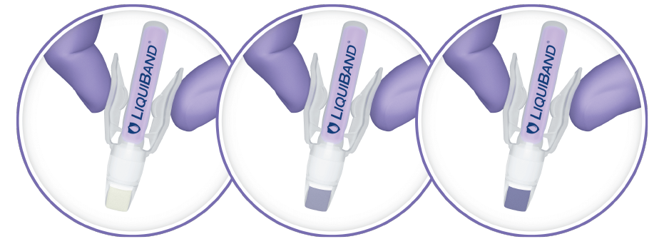 - When the tip turns violet, LiquiBand® Exceed™ is ready to use. Ensure that wound is thoroughly clean and dry prior to closure.