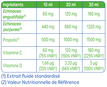 Η αποκλειστική του φόρμουλα συνδυάζει 4 δραστικά συστατικά, Εχινάκεια, Πρόπολη και βιταμίνες C & D τα οποία προάγουν τη φυσική άμυνα του σώματος.